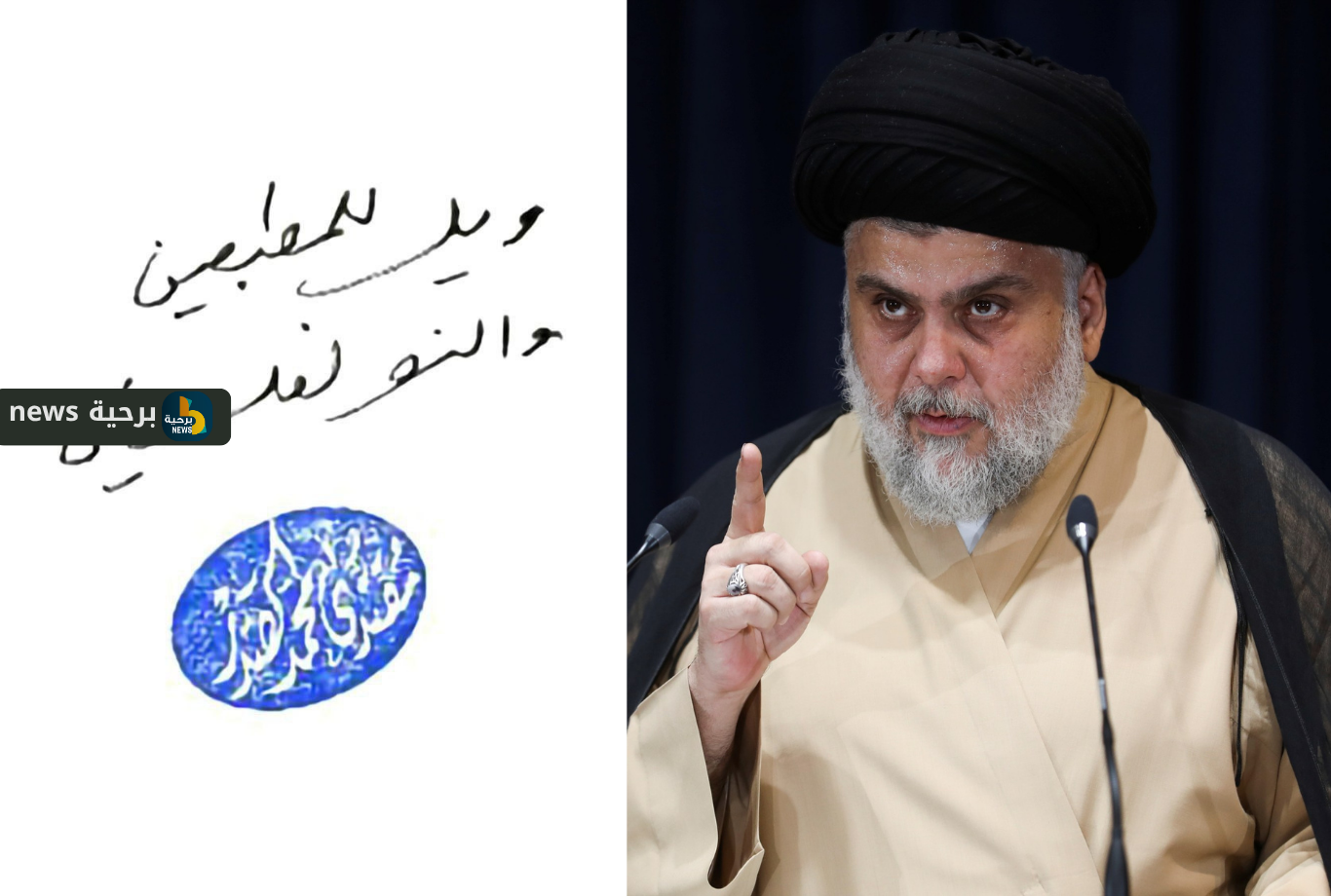 نشر زعيم التيار الصدري، السيد مقتدى الصدر، رسالة بخط يده أكد فيها موقفه الثابت من القضية الفلسطينية، قائلاً:”ويلٌ للمطبعين… والنصر لفلسطين”.