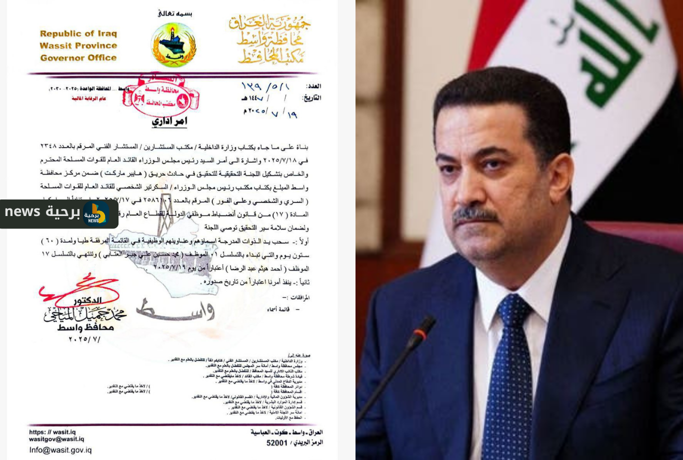أصدر محافظ واسط، محمد المياحي، قرارًا يقضي بـ سحب يد عدد من الموظفين المتهمين بـ”التغاضي والإهمال” في ملف افتتاح هايبر ماركت الكوت، وذلك بناءً على توجيه مباشر من رئيس الوزراء.وأكد المحافظ أن هذا الإجراء يأتي لحين اكتمال التحقيقات الجارية بشأن الملابسات التي رافقت فتح المشروع، مشددًا على أن الحكومة المحلية لن تتهاون مع أي تقصير أو تلاعب يتعلق بالسلامة العامة أو القوانين النافذة.