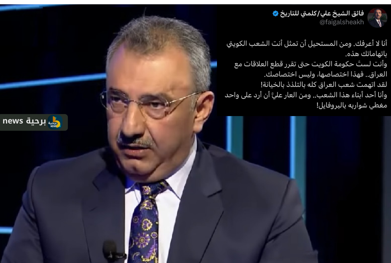 ردّ السياسي العراقي فائق الشيخ علي على تصريحات المحامي الكويتي مشاري السند، التي هاجم فيها الشعب العراقي واصفاً إياه بـ”المتَلذّذ بالخيانة”.وقال الشيخ علي في تصريح له: “من السهل أن تُطلق الشتائم على الشعوب، لكن من الصعب أن تكون منصفاً وعادلاً.